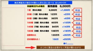 同じように5割(100個)の注文がきましたら、50万円の仕入れをして60万円頂くことができます。
